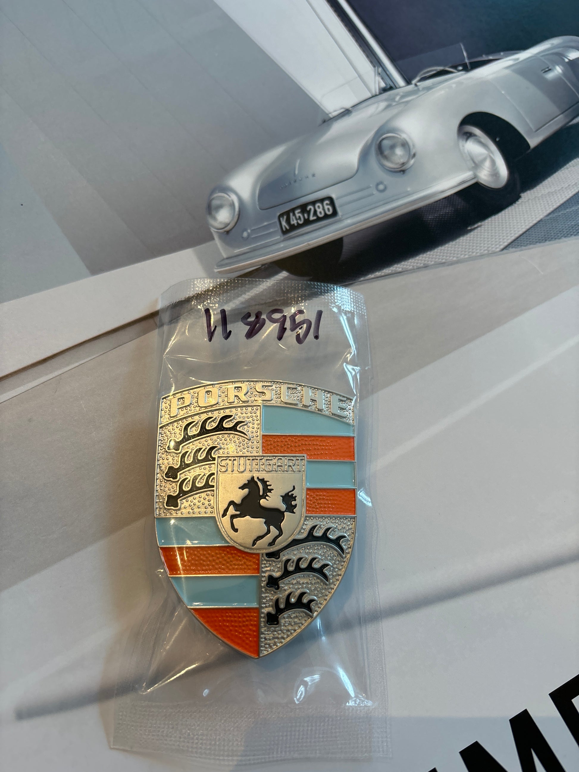 Gulf colors, Porsche Hood badge